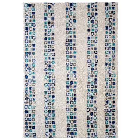 Colette Shelton of Cococozy has designed this geometric area rug to work in any room. The pattern is both familiar and fresh, bridging comfort and style Quiet Chestnut constasts with energizing Azure. It has a 20mm pile height and is made of 100% Olefin with easy care performance features.