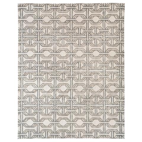 This rug from Colette Shelton of Cococozy expresses her more natural side in this area rug. It reflects her earthly tempered color and style sensibility. The alternating rows of open and closed shapes provide everlasting visual interest. It is a hand tufted, 100% wool rug in a high-low construction.